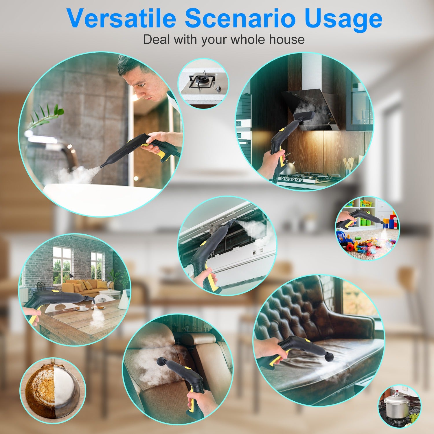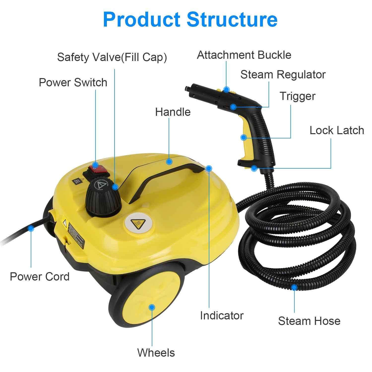 - *Multiple Safe & Portable Designs*: Our portable steamer cleaner not only provides 464℉ overheat protection,explosion-proof double-layer steam hose and safety valve for safe operation,but also ensures maximum flexibility and maneuverability with 360° easy-rolling wheels,portable handle,2 extension wands,16.83ft ultra-long power cord and 7.1ft steam hose.
